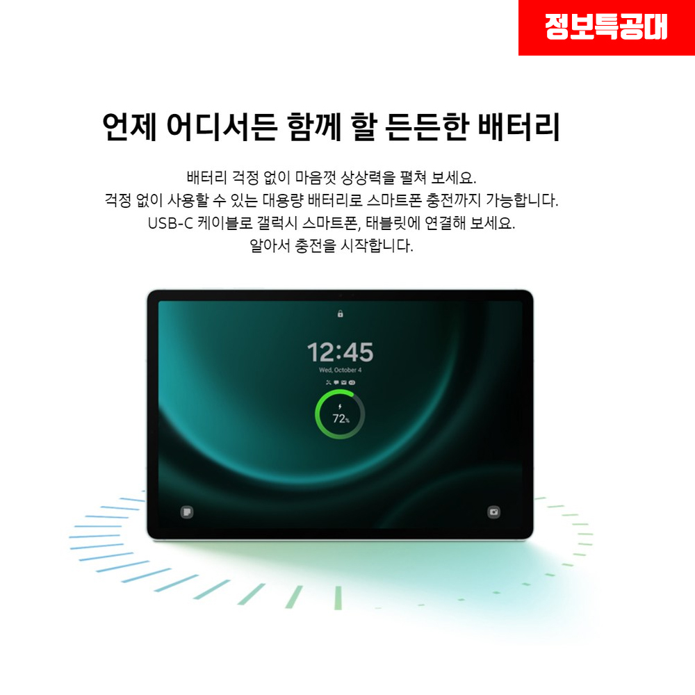 야외의 조명이나 햇빛을 감지하고 똑똑하게 밝기를 조절하는 비전 부스터 기능을 탑재하였습니다. 밝은 야외에서도 태블릿의 넓은 화면 그대로 생생하게 콘텐츠를 즐길 수 있죠.