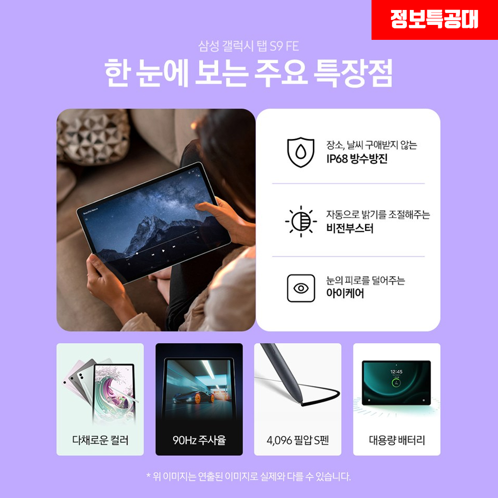 안녕하세요! 다양한 정보를 빠르고 투명한 할인율과 세일 정보를 알려드리는 정보특공대입니다. 오늘은 삼성전자 갤럭시탭 S9에 대해 소개해드리려고 합니다. 갤럭시탭 S9는 강력한 성능과 세련된 디자인으로 많은 사랑을 받고 있는 제품인데요. 지금 이 기사를 통해 삼성 갤럭시탭 S9의 다양한 스펙과 특징, 그리고 할인 정보까지 모두 알아보세요!