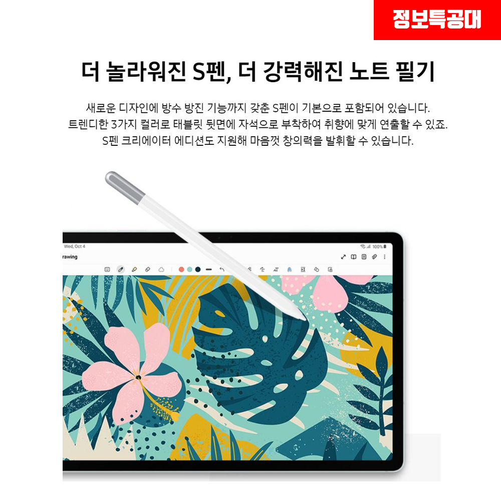 안녕하세요! 다양한 정보를 빠르고 투명한 할인율과 세일 정보를 알려드리는 정보특공대입니다. 오늘은 삼성전자 갤럭시탭 S9에 대해 소개해드리려고 합니다. 갤럭시탭 S9는 강력한 성능과 세련된 디자인으로 많은 사랑을 받고 있는 제품인데요. 지금 이 기사를 통해 삼성 갤럭시탭 S9의 다양한 스펙과 특징, 그리고 할인 정보까지 모두 알아보세요!