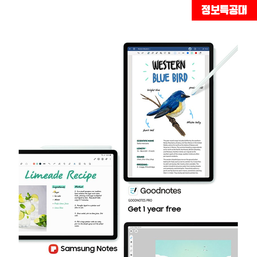 이제 전문가 수준의 노트 필기로 상상력을 마음껏 발휘해 보세요. Samsung Notes와 굿노트는 실제 종이에 쓰는 느낌과 부드러운 S펜의 필기 경험을 느낄 수 있도록 최적화되었습니다. 세로 모드에서 스케치하고 가로 모드로 편집하고 물론, 그 반대로도 가능합니다.