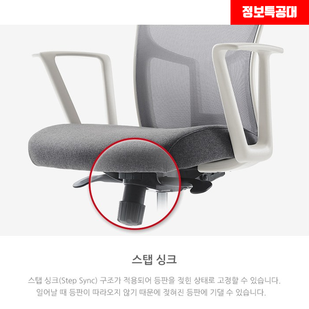 스탭 싱크 구조가 적용되어 등판을 젖힌 상태로 고정할 수 있습니다. 일어날 때 등판이 따라오지 않아 젖혀진 등판에 기댈 수 있습니다.