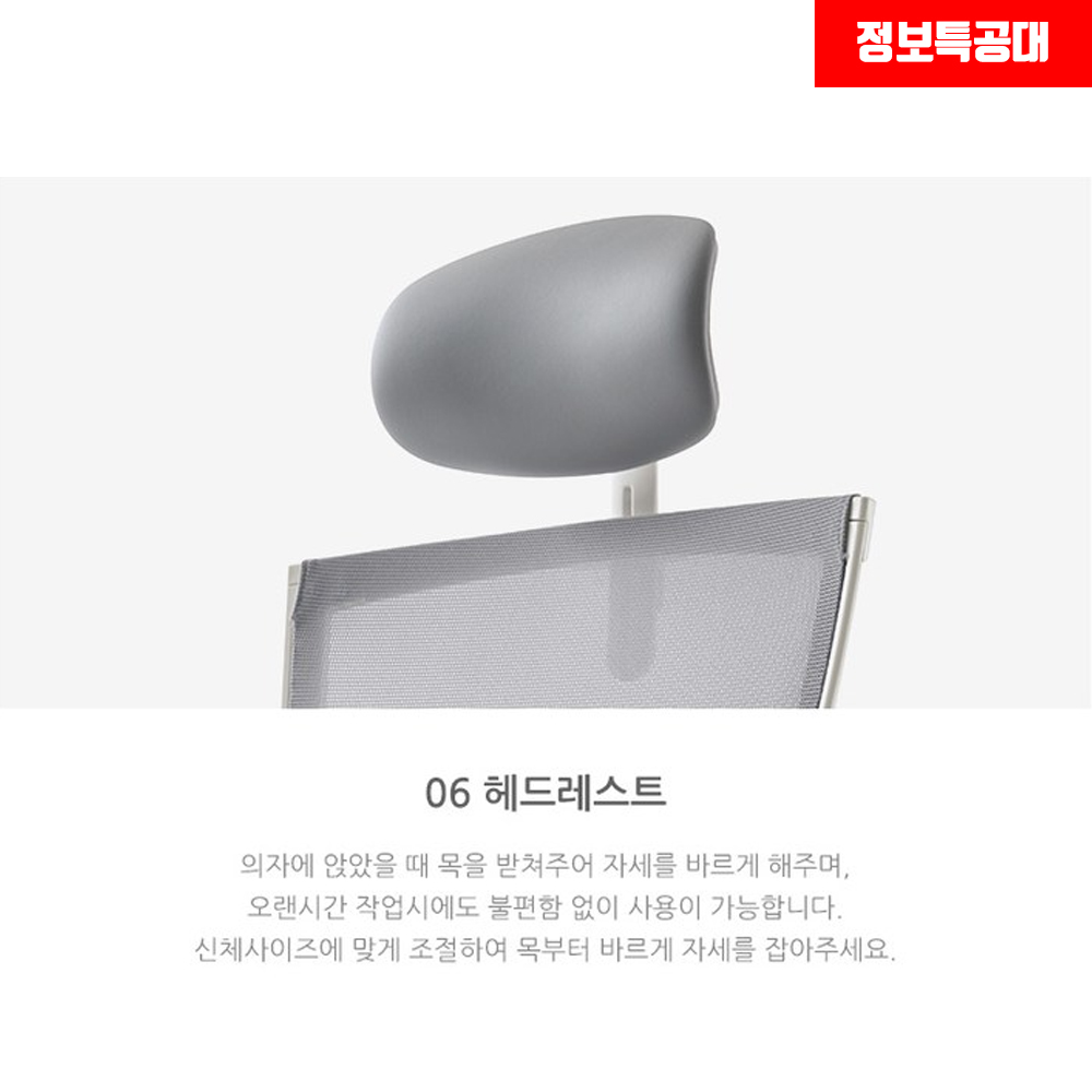 의자에 앉았을 때 목을 받쳐주어 자세를 바르게 해주며, 오랜 시간 작업 시에도 불편함 없이 사용할 수 있습니다. 신체 사이즈에 맞게 조절하여 목부터 바르게 자세를 잡아주세요.