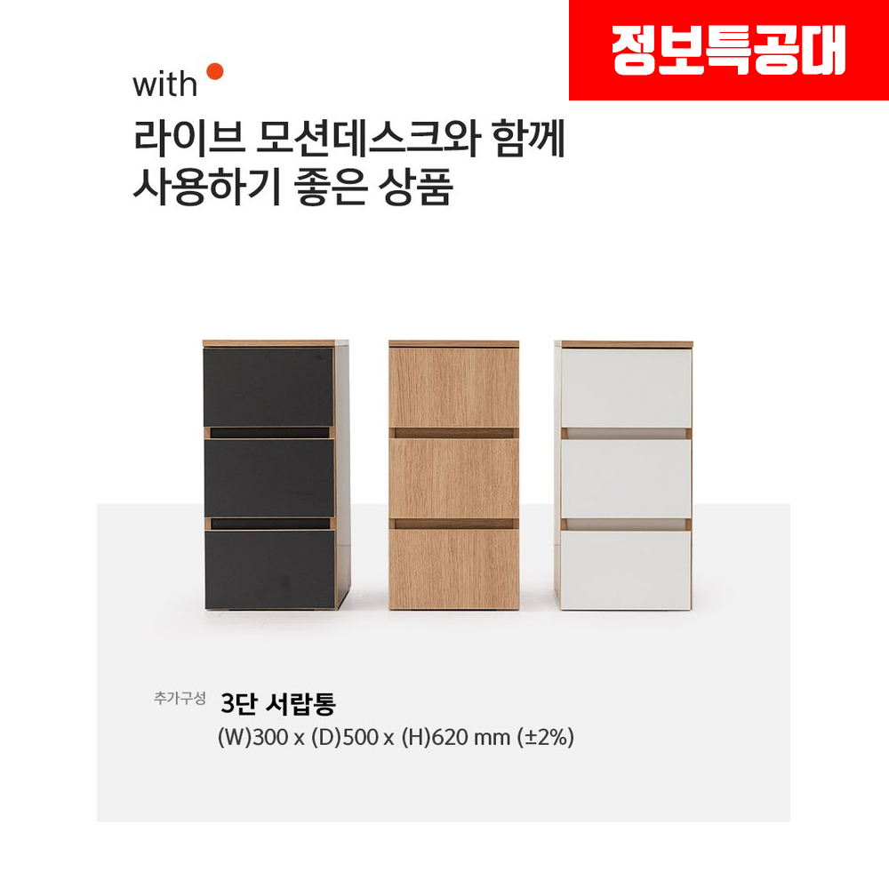 지금 사용하고 있는 라이브 모션 데스크를 3단 서랍통이랑 함께 이용하고 있는데요.