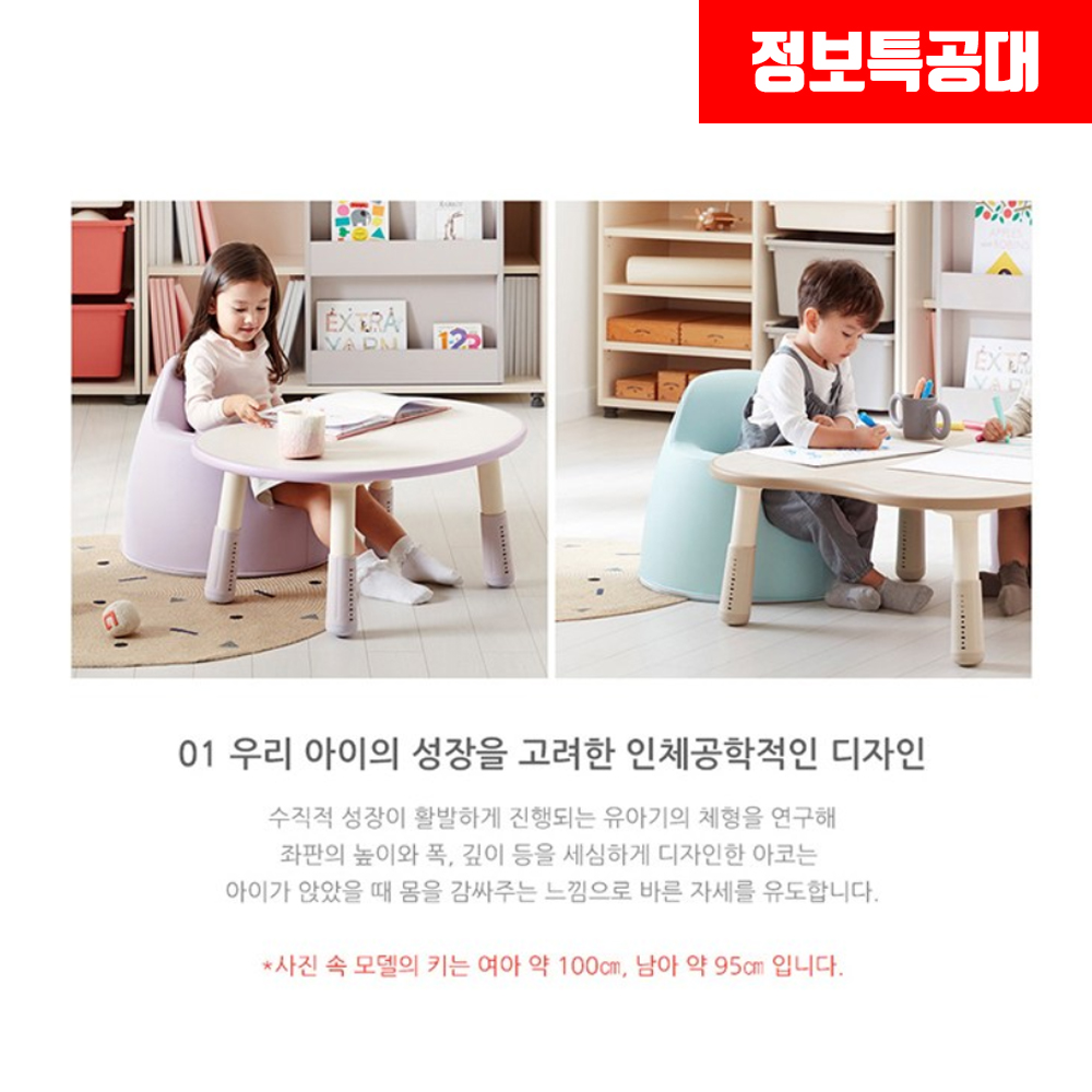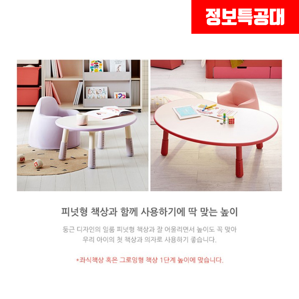 그 이유는 피넛형 책상과 디자인이 흡사하게 둥글둥글하고 땅콩 책상의 그로잉형 1단계에 최적화된 높이라서 아이들에게 최적의 환경을 제공합니다.