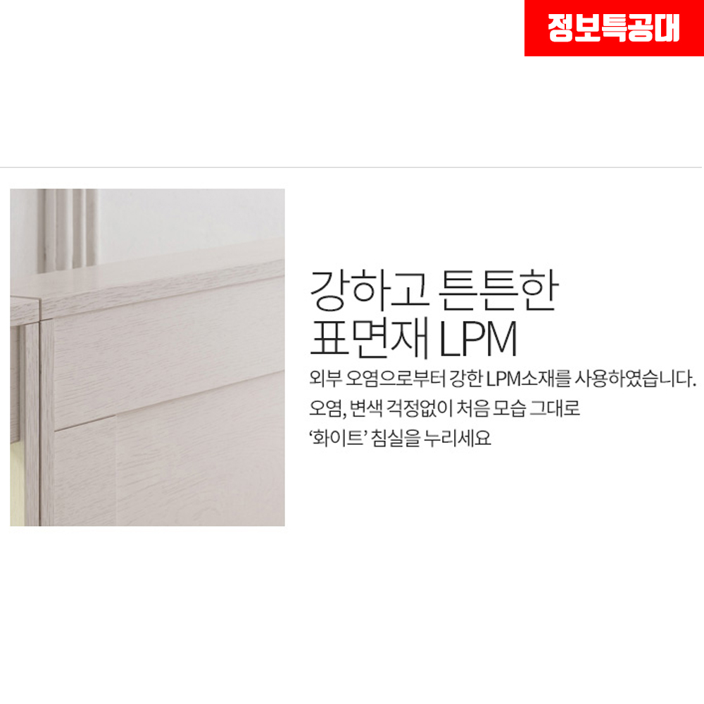 리바트 데이지 서랍장의 소재는 LPM을 소재로 사용해서 내구성은 매우 강하고 오염으로부터 강한 소재라서 아이들을 키우는 집에서도 사용이 가능하고 관리가 편리해요~