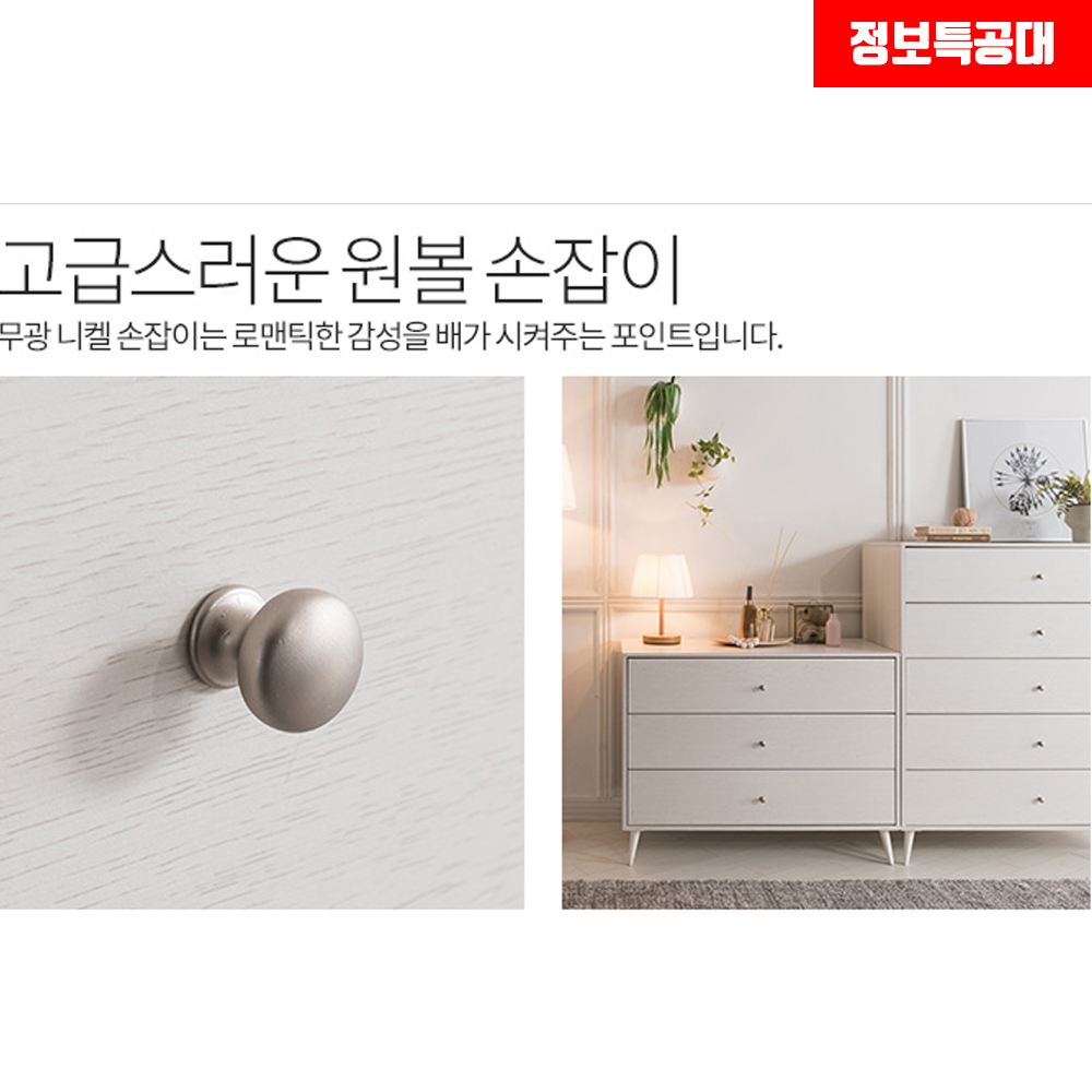 리바트 데이지 서랍장의 손잡이는 고급스러운 원볼 손잡이가 있어서 열고 닫기 쉬우며, 유광이 아닌 무광이라 지문 걱정 없이 관리할 수 있어서 관리가 까다로운 편이 아니에요~