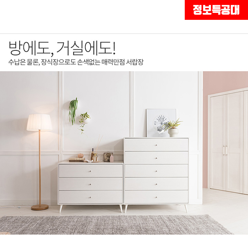 리바트 데이지 3단 서랍장, 리바트 데이지 5단 서랍장으로 나눠져서 수납공간이 많이 필요 없다면 3단으로 구입하시고 수납이 많이 필요하다면 5단을 구입하시는 추세예요~