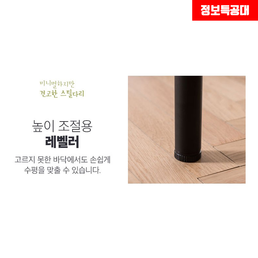 마지막으로 리바트 로티르 식탁의 다리 하단부에는 높이 조절용 레벨러가 있어 수평이 맞지 않는 가정집이나 사무실에서도 수평을 맞춰서 사용할 수 있습니다.