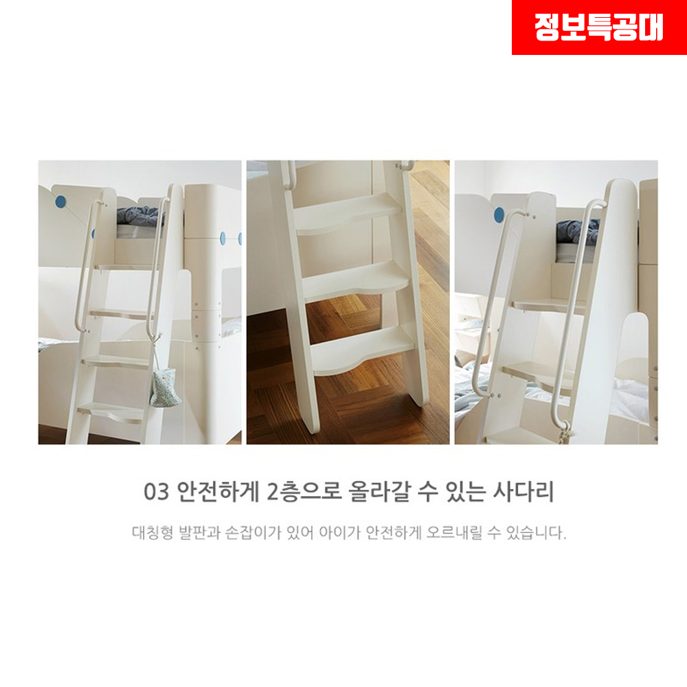 사다리를 안전하게 이용하기 위해서는 사이드에 위치한 손잡이를 잡고 이동하는 것이 좋고 계단에서 뛰지 않는다면 정말 안전하게 오랜기간을 이용할 수 있는 일룸 팅클팝 침대입니다.