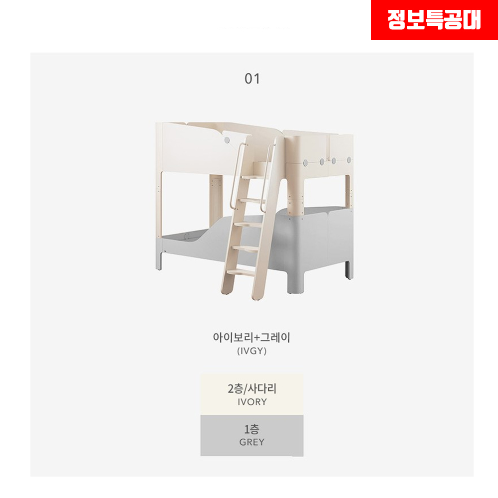 일룸 팅클팝 침대 2인 계단장형도 깔끔하고 심플한 그레이 컬러로 구입할 수 있으며, 2층은 아이보리 컬러로 제조되었습니다.