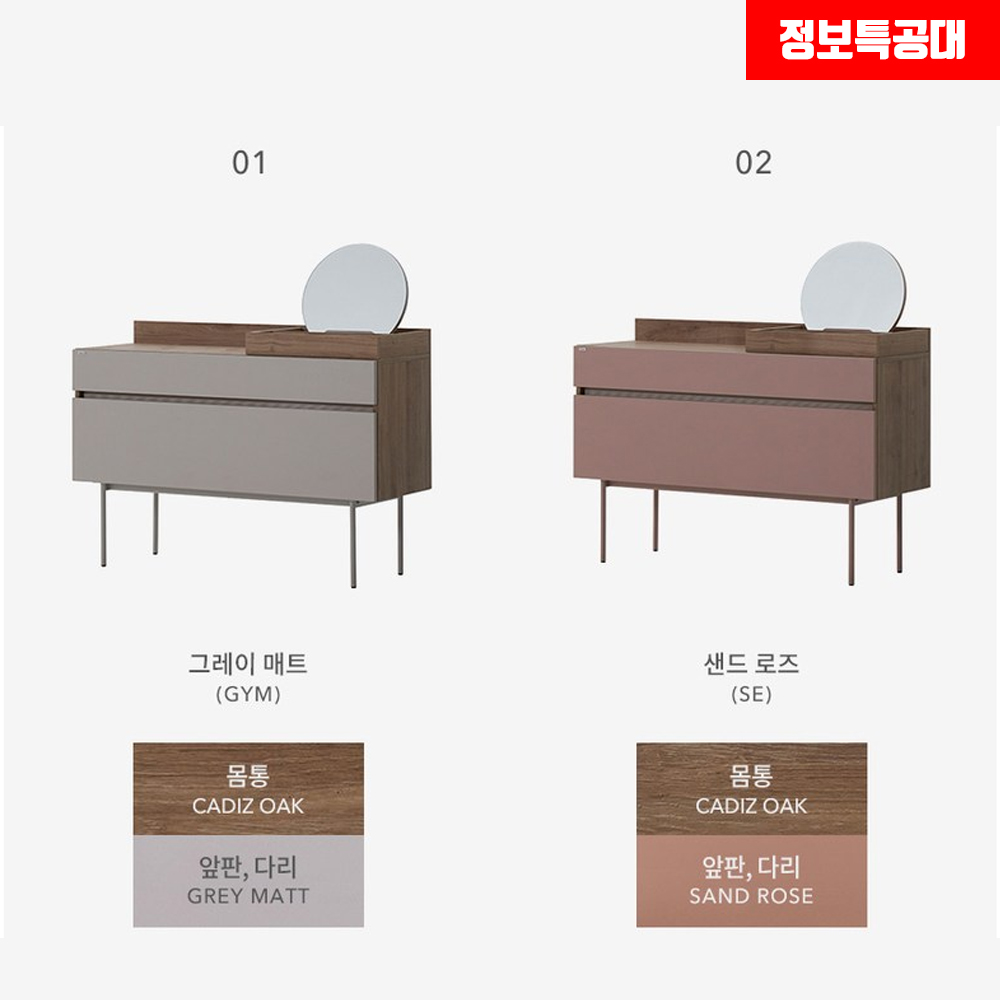 일룸 화장대의 컬러는 그레이(GYM), 샌드 로즈(SE) 두 가지로 출시되었으며, 샌드 로즈가 점차 인기를 끌고 있으며, 많은 분들이 찾아주시는 제품이에요.