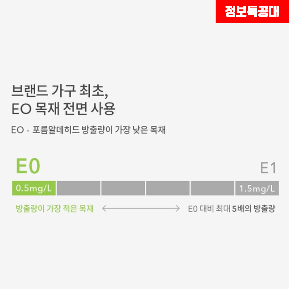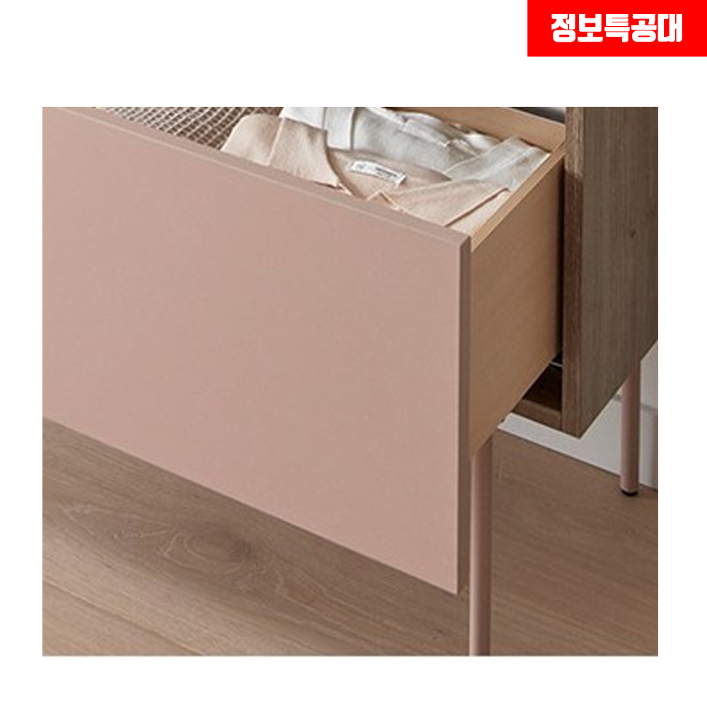 일룸 화장대의 다리는 21.2 스틸 파이프와 분체도장을 이용해 제조되었으며, 레일은 독일 히티치 회사의 댐핑 언더 레일을 이용하고 오가나이저(화장대 악세사리)는 15T PB로 마감하고 LPM 내장재를 이용했습니다.