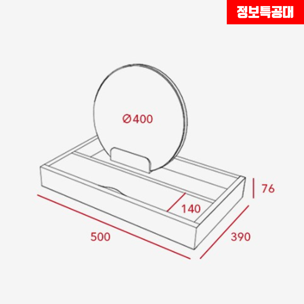 일룸 화장대의 상단부 사이즈는 가로 500mm, 깊이 390mm, 높이(거울 제외) 76mm로 출시된 제품입니다.
