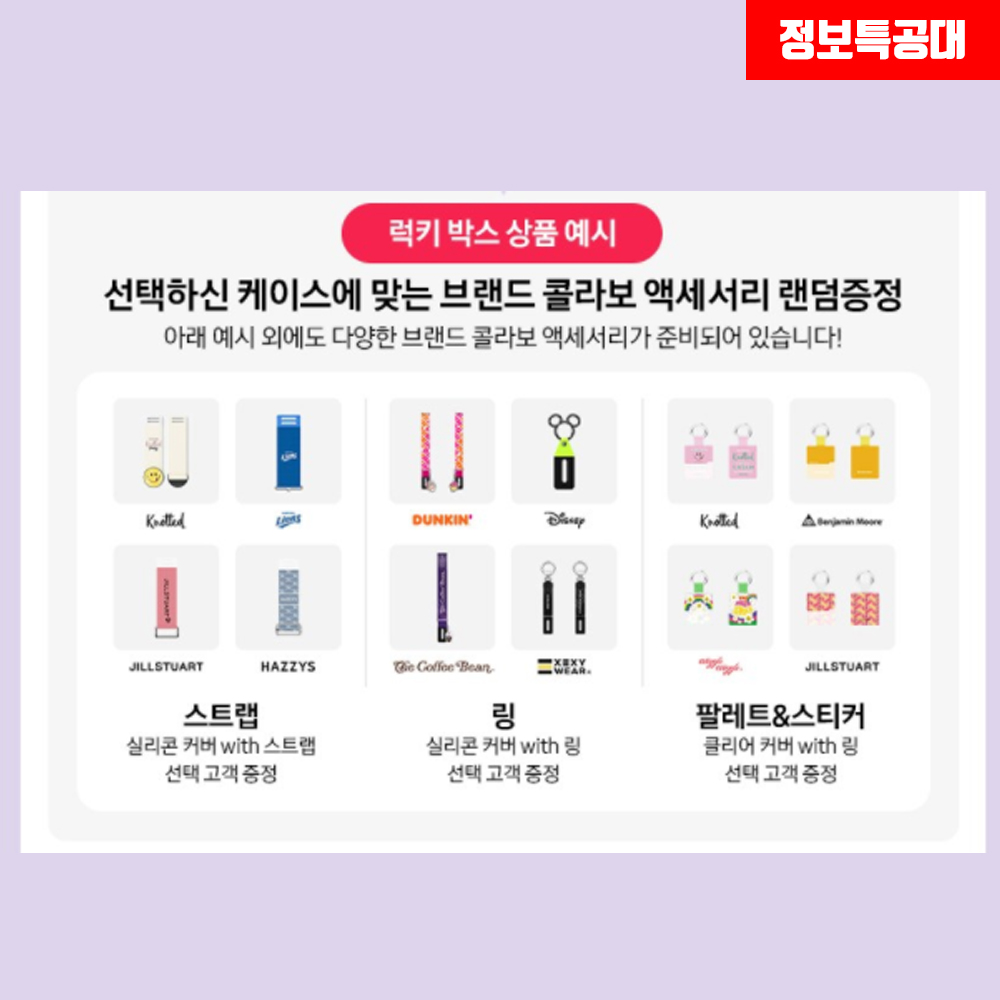 갤럭시 Z 플립3 자급제 지급 혜택으로 럭키박스는 스트랩, 링, 팔레트&스티커 중 선택해 지급받을 수 있습니다.