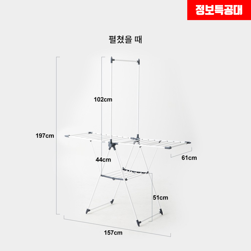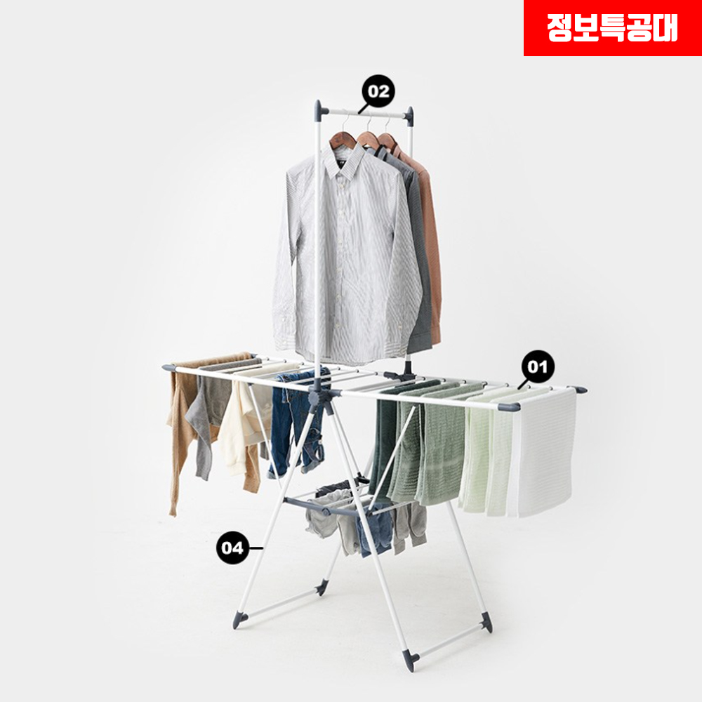 여름에는 옷이 많아서 편리하고 겨울에는 긴 옷들을 말리기 좋아서 기존에 사용하던 건조대는 버리고 1년 조금 넘게 잘 사용하고 있습니다.