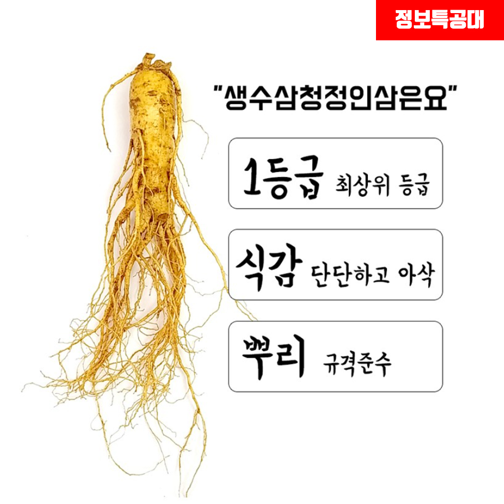 생수삼청정 인삼은 1등급 인삼이고 식삼이 단단하고 아삭거려서 맛까지 좋아서 건강을 챙기셔야할 부모님에게 선물해주기 딱 좋은 제품이에요.