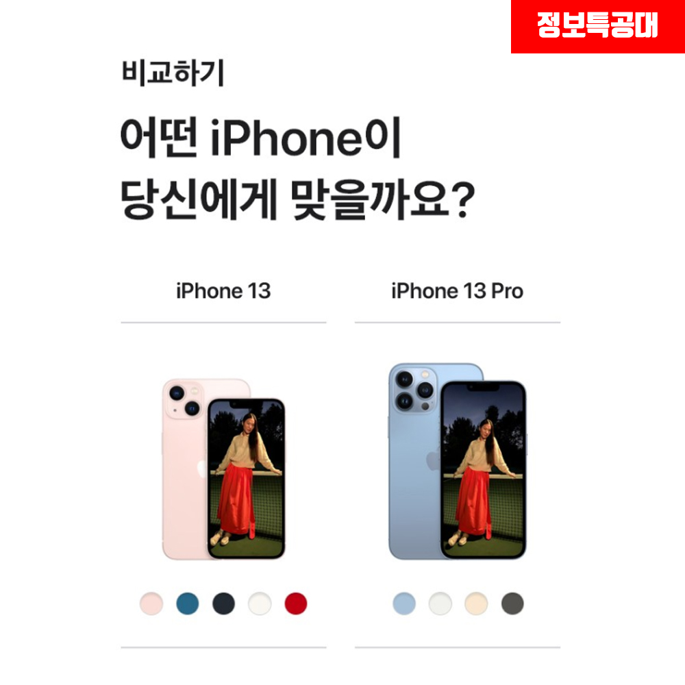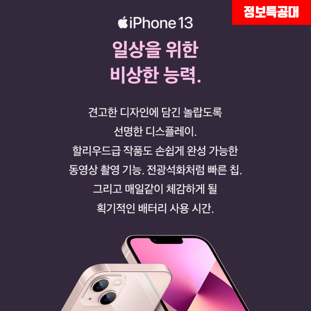 위의 이미지는 아이폰13 자급제 사전예약 전 알고 가야할 아이폰의 스펙이며, 아이폰 구입은 아래 링크를 클릭해 진행할 수 있습니다.