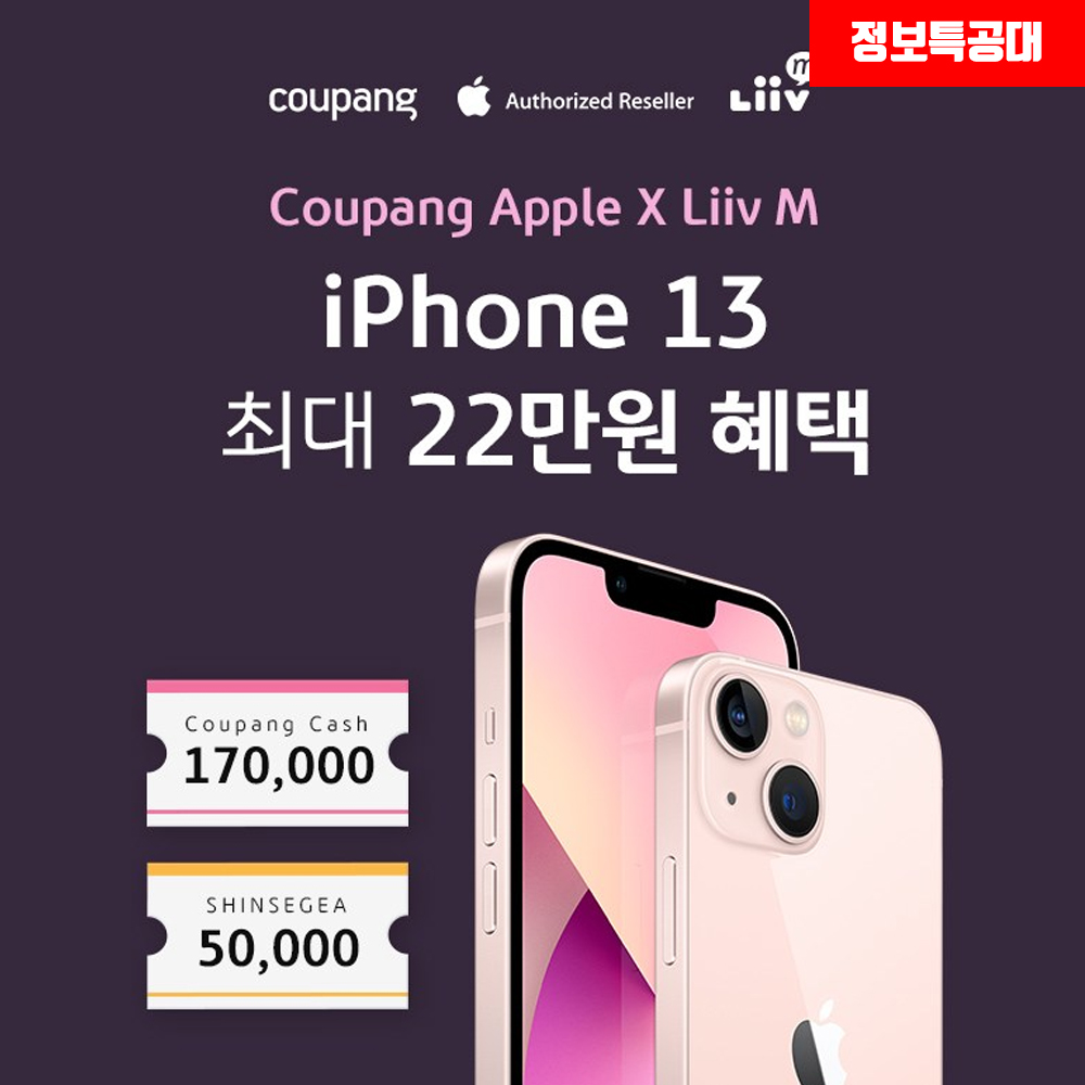 아래 링크 클릭 후 아이폰13 자급제 사전예약 시 최대 22만원의 혜택을 받을 수 있고 최대 50,000(원)의 적립금까지 받을 수 있습니다.