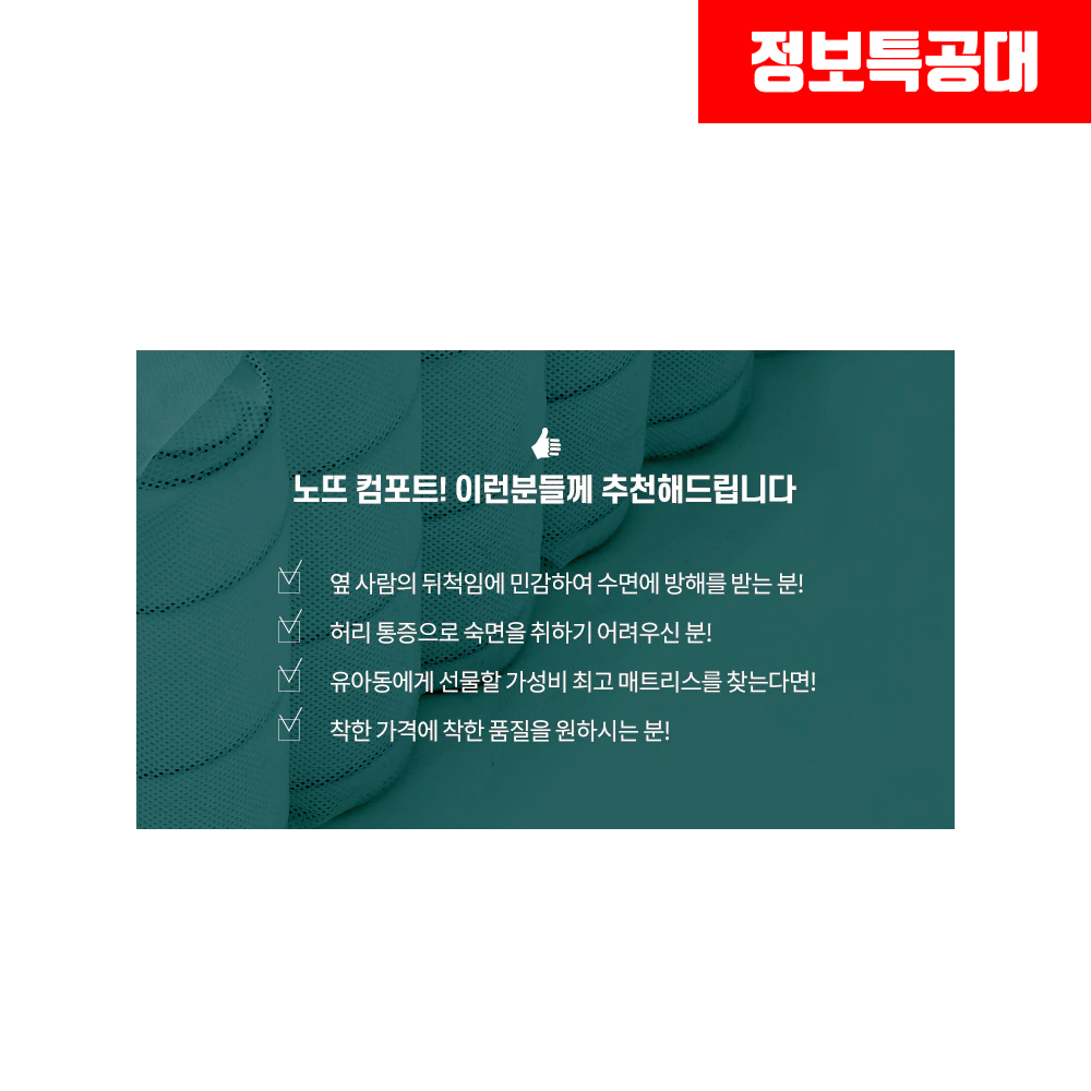 숙면 시 민감하거나 허리 통증으로 숙면이 어렵거나 가성비를 찾는 분들에게 적극 추천해드리고 싶은 제품입니다.