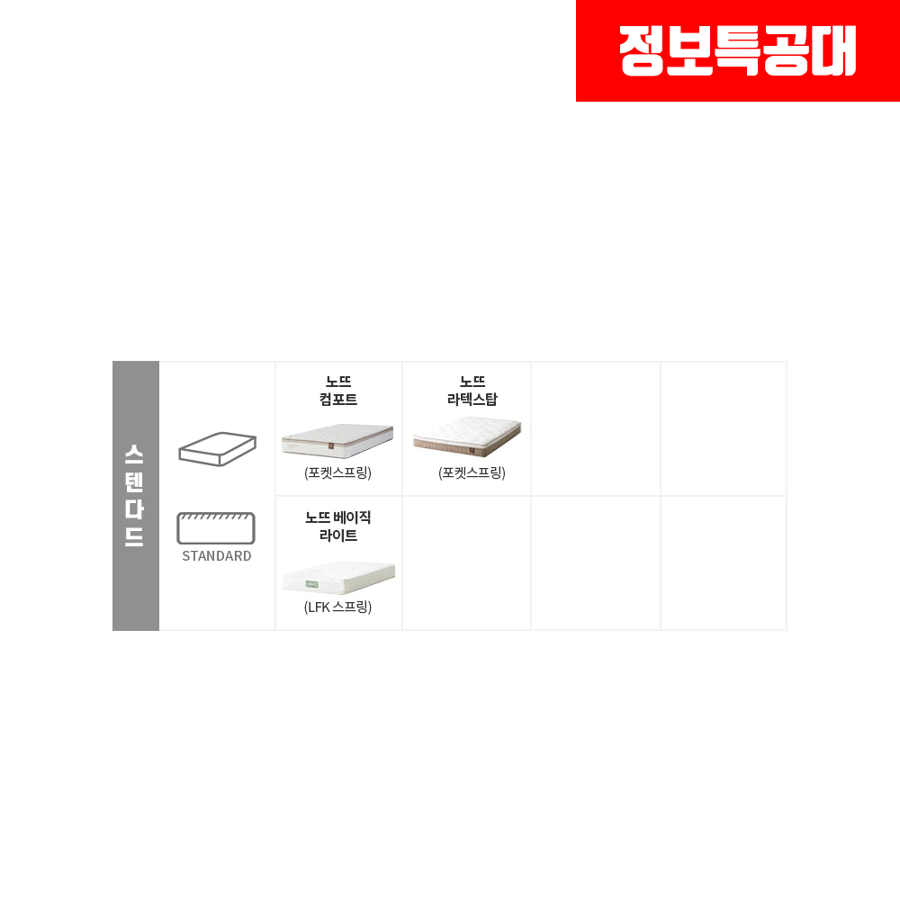 노뜨컴포트 포켓스프링 매트리스는 포켓 스프링형 제품으로 스텐다드 제품에 속하는 제품입니다.