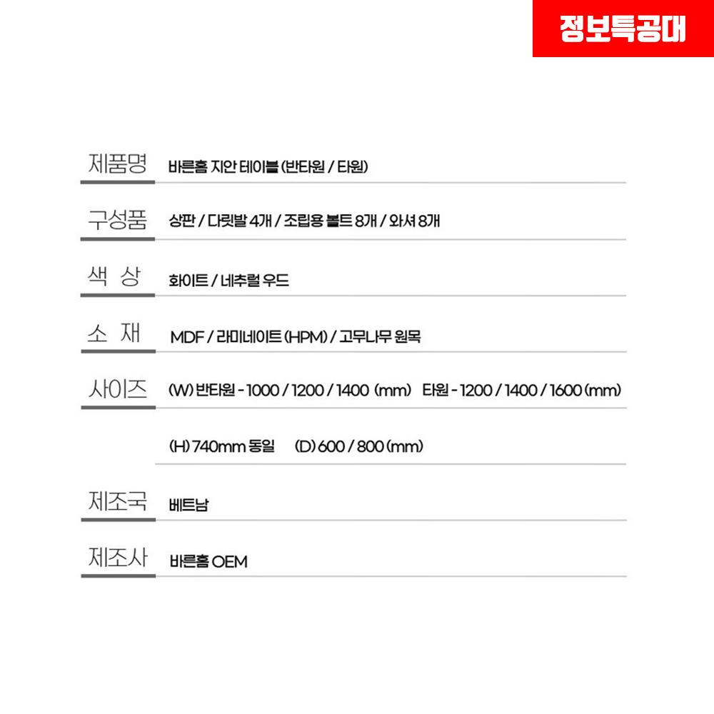 정리하면 반원형 테이블 1200 제품의 정보는 아래와 같습니다.