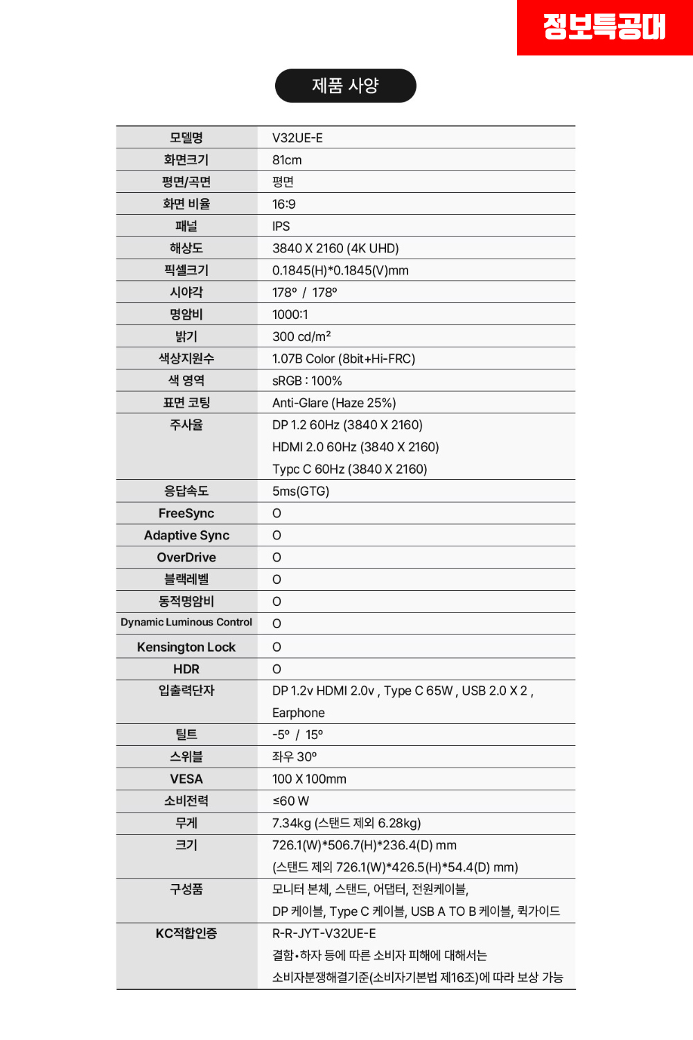 주연테크 4K UHD USB Type C 65W FreeSync HDR 모니터 화이트