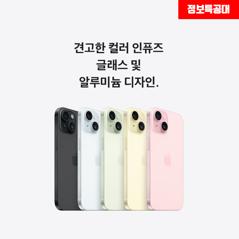 아이폰 15는 다양한 색상 옵션으로 출시되어 사용자의 취향에 맞게 선택할 수 있습니다. 클래식한 블랙과 화이트, 세련된 실버, 그리고 트렌디한 핑크와 블루까지 다양한 색상이 준비되어 있습니다. 또한, 128GB, 256GB, 512GB, 1TB의 저장 용량 옵션으로 제공되어 사용자 필요에 맞게 선택할 수 있습니다.