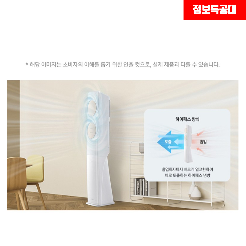 공기를 흡입하자 마자 바로 붐어주는 하이패스 방식과 제트 엔진 기류 제어 방식을 적용한 회오리 팬으로 공간을 빠르게 시원하도록 만들어줍니다.