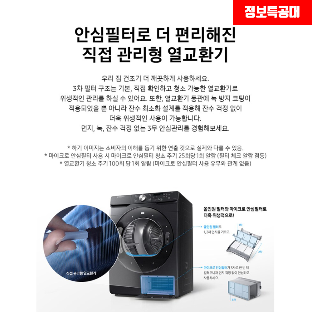 · 3차 필터 구조와 직접 확인 및 청소 가능한 열교환기로 위생적인 사용이 가능합니다.