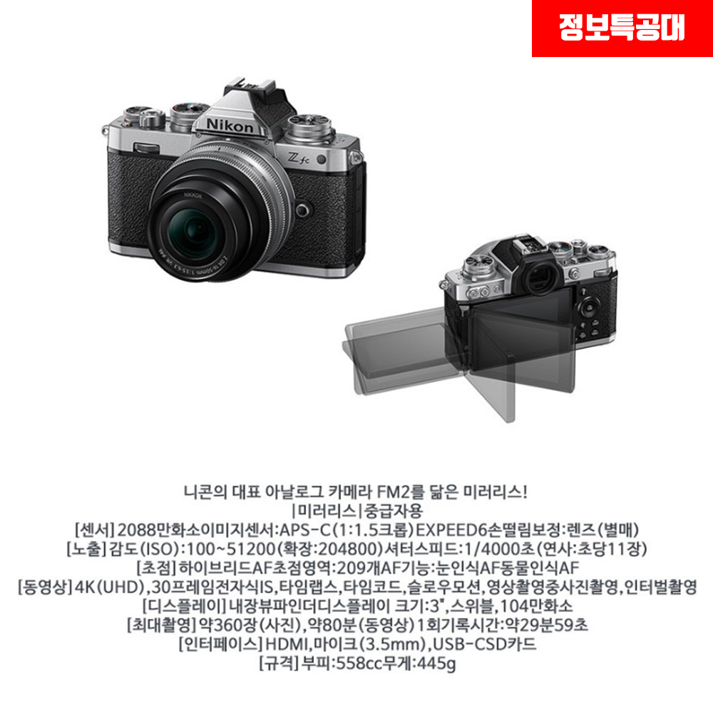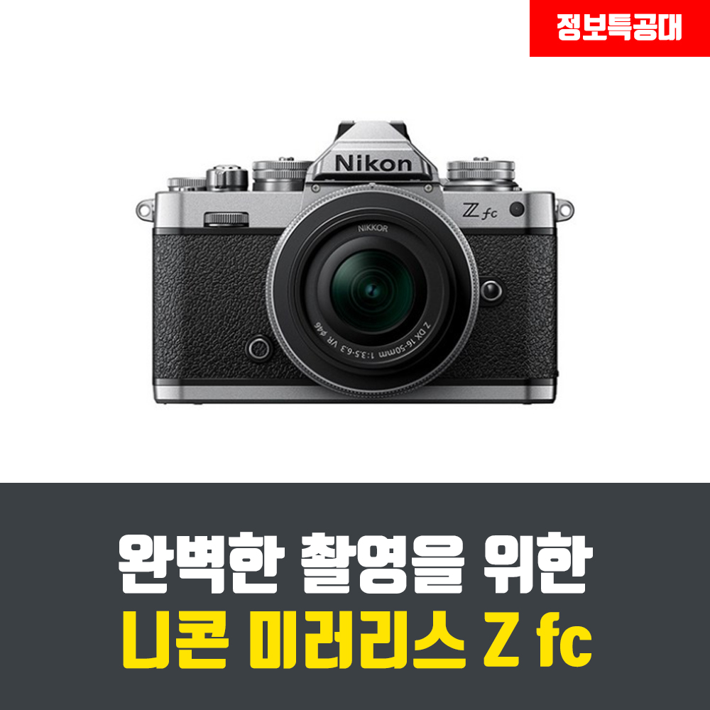 안녕하세요! 다양한 정보를 빠르고 투명한 할인율과 세일 정보를 알려드리는 정보특공대입니다. 오늘 소개할 제품은 최신 니콘 미러리스 카메라 Z fc입니다. 이 카메라는 레트로 디자인과 최첨단 기술이 결합된 제품으로, 사진 촬영의 즐거움을 한층 더해줄 것입니다.
